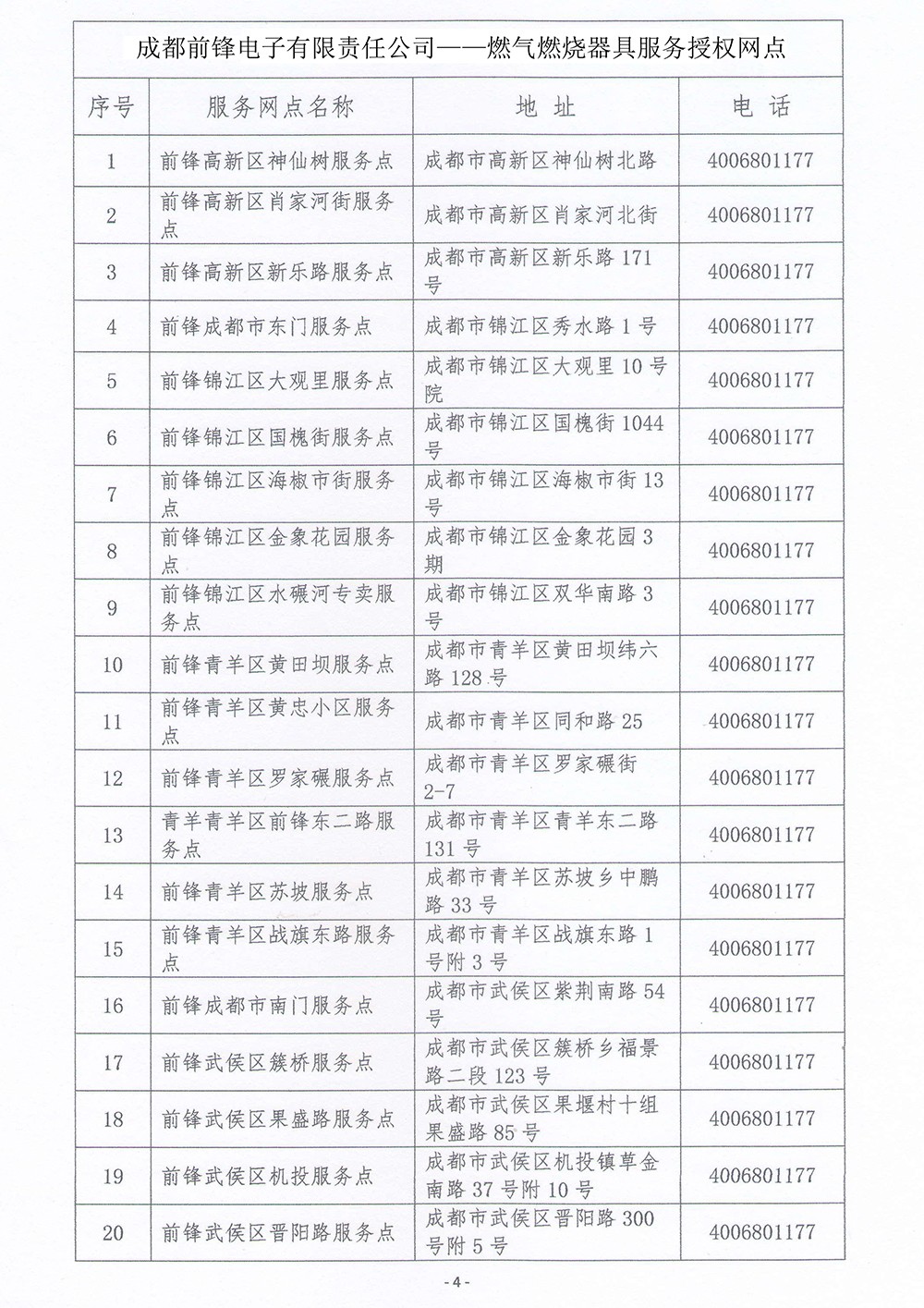 成都前鋒電子有限責任公司 燃氣燃燒器具服務(wù)授權(quán)網(wǎng)點總覽